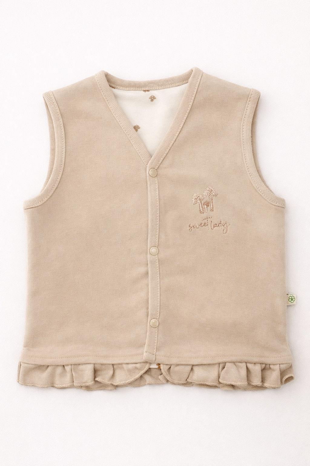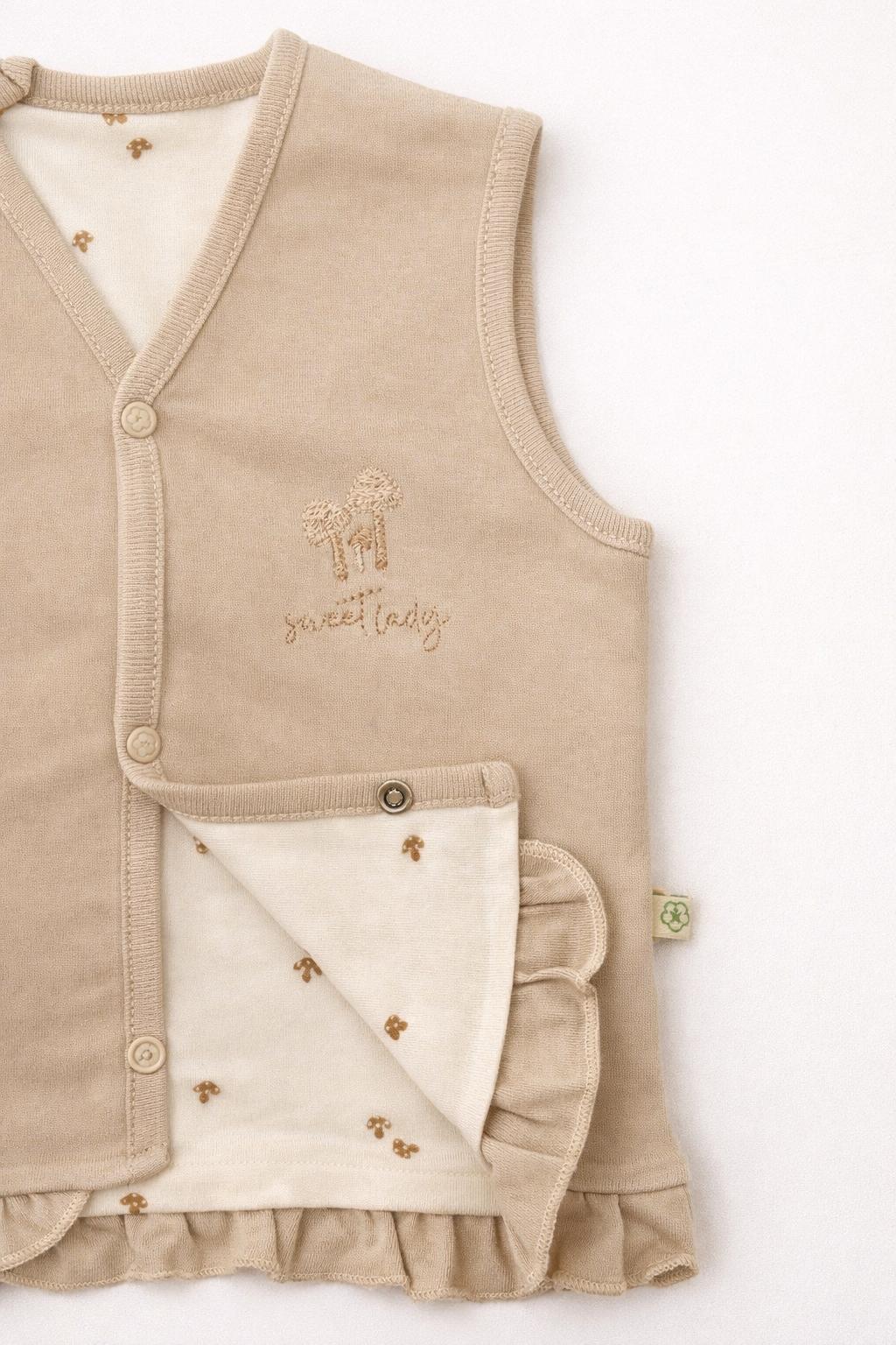 %100 organik iç dış çift kat penye kumaştan üretilen bu bebek yelek, ultra yumuşak dokusuyla hassas ciltlere nazikçe temas eder. 🌿