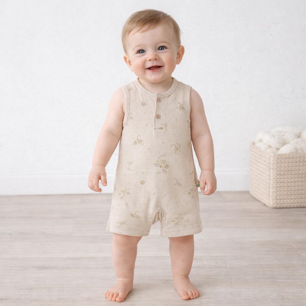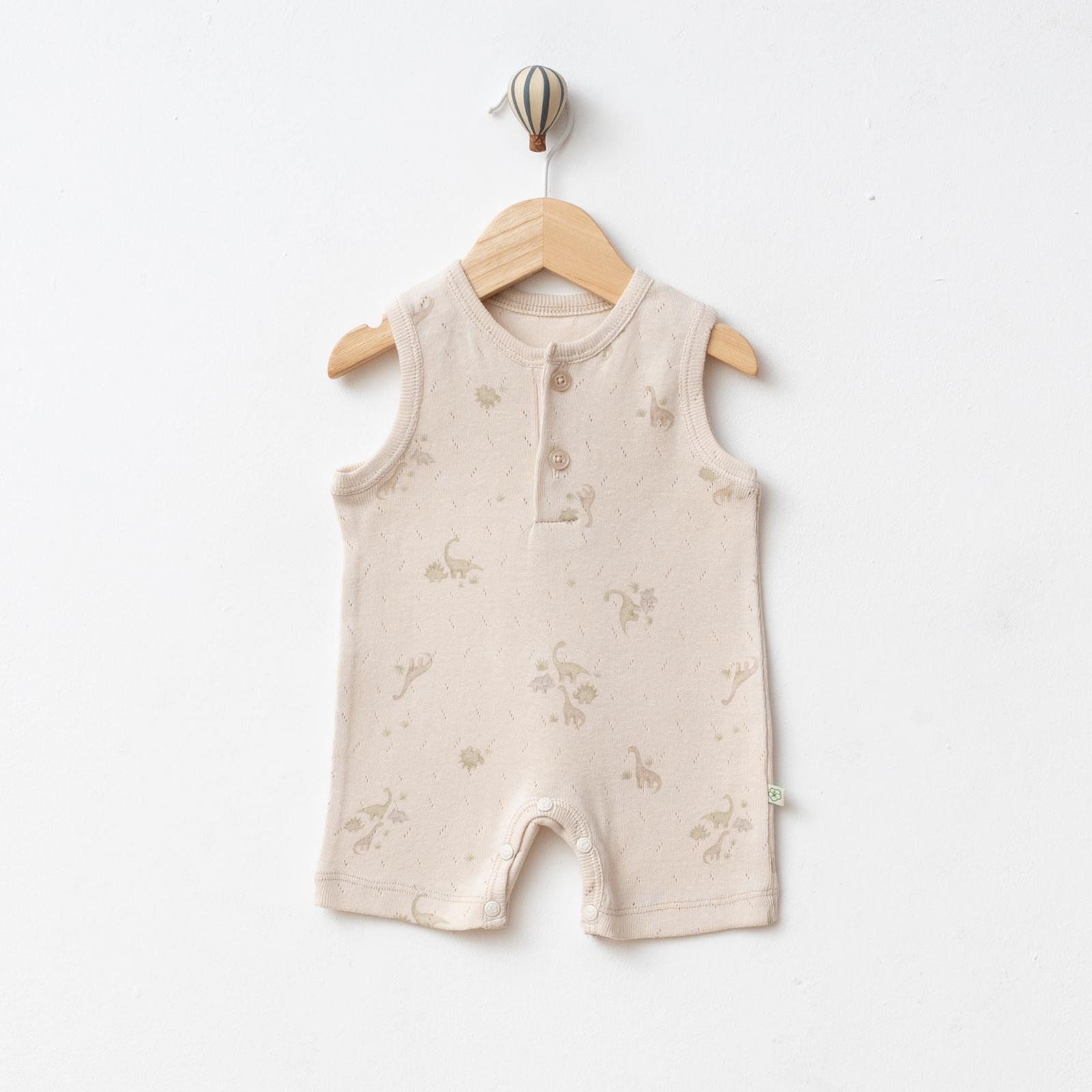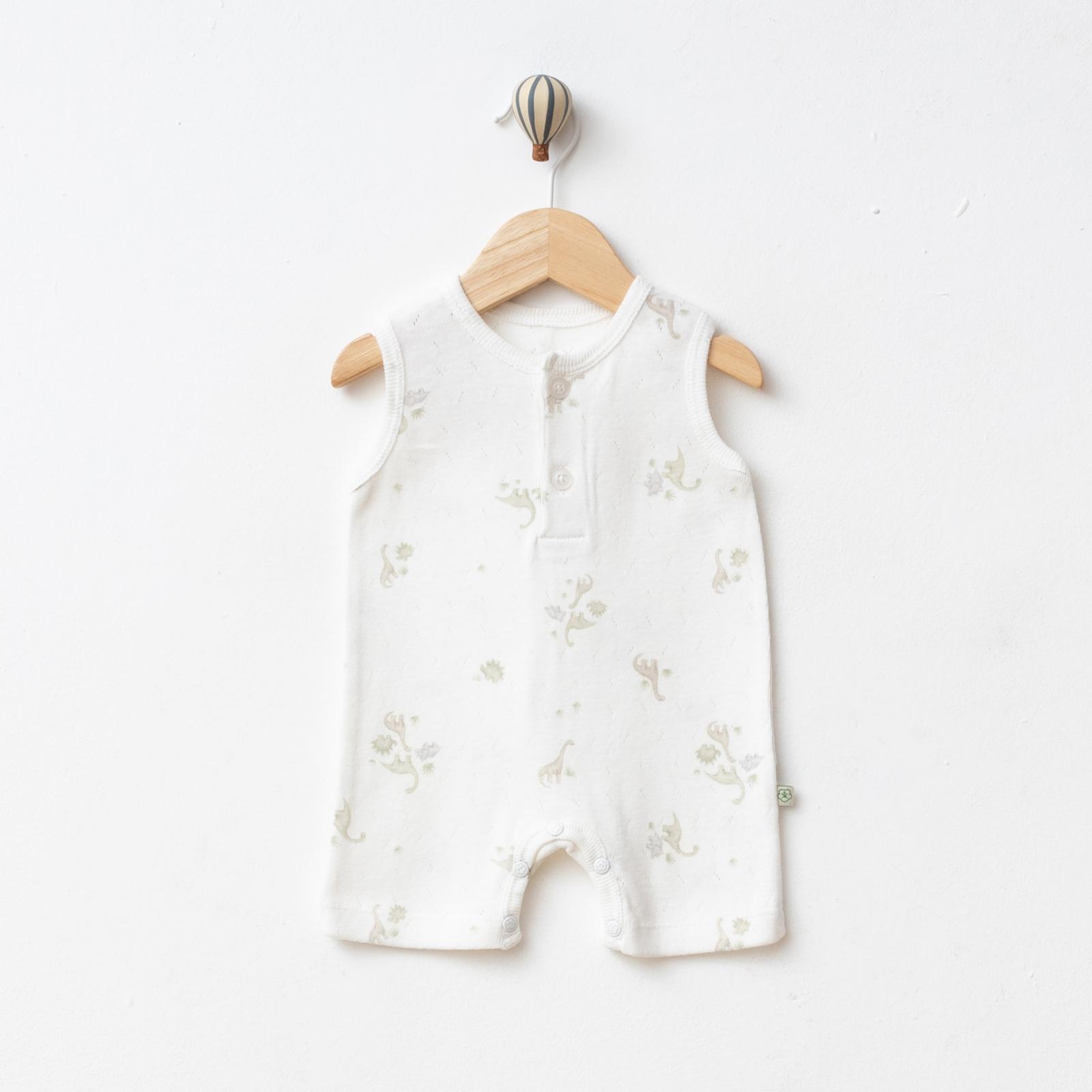 Bebeğinizin cildini koruyan, doğaya saygılı bir tulum mu arıyorsunuz? İşte karşınızda! %100 organik pamuklu kumaşı ve sevimli dinozor desenleriyle bu kolsuz tulum, miniklerin favorisi olacak. Yumuşacık dokusuyla nefes alır, bebeğinizi rahat ettirir. Pratik ön düğmeleri sayesinde giydirmesi de çok kolay.
