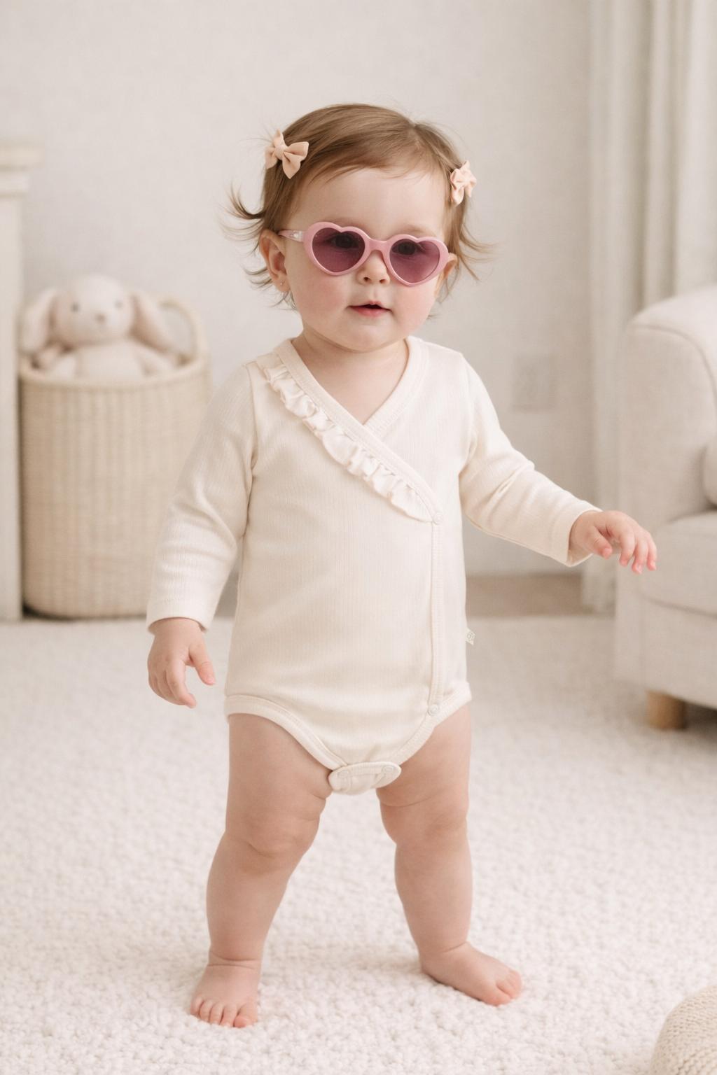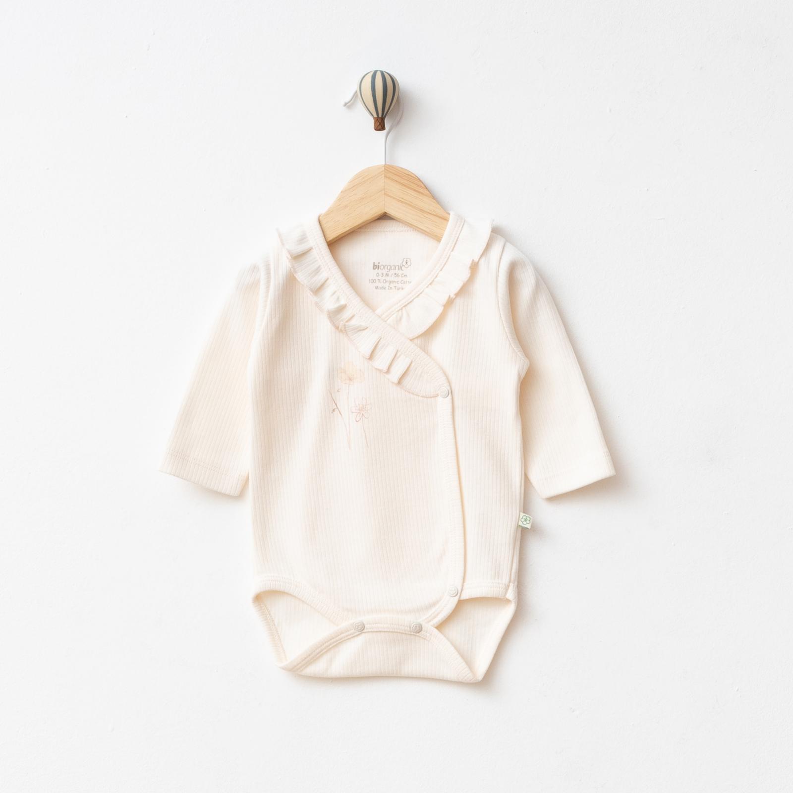 Minimal ve şık tasarımı, göğüs kısmındaki zarif fırfır detayı ile sade ama estetik bir görünüm kazandırır. Günlük kullanım için ideal olan bu ürün, hem evde hem dışarıda bebeğinizin tarzını tamamlar 👶 Öne Çıkan Özellikler: