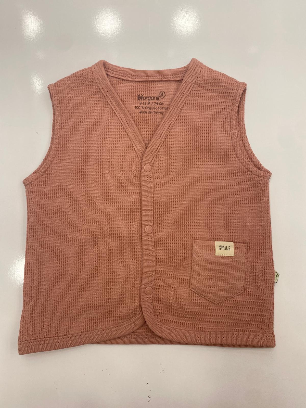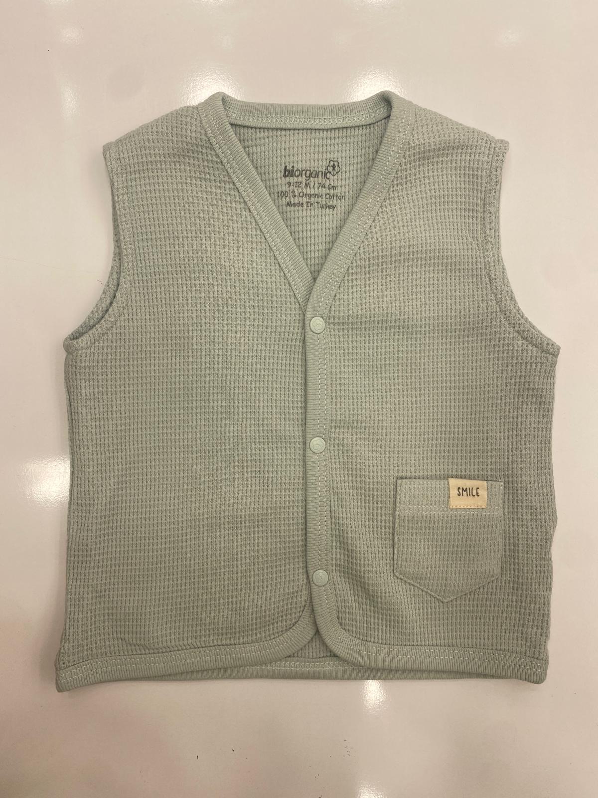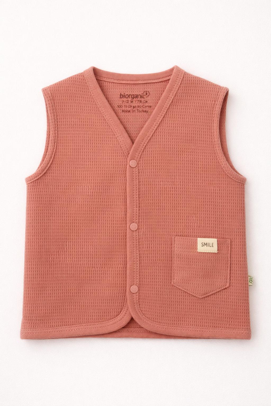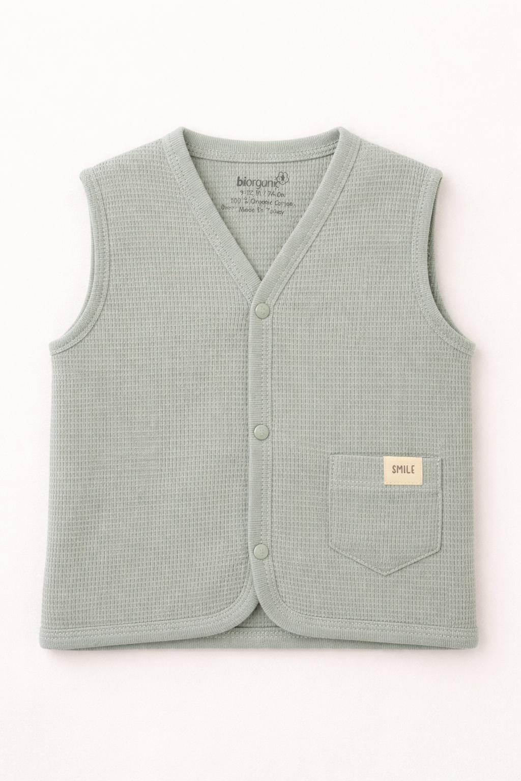 %100 organik Waffle kumaştan üretilen bu bebek yelek, ultra yumuşak dokusuyla hassas ciltlere nazikçe temas eder. 🌿